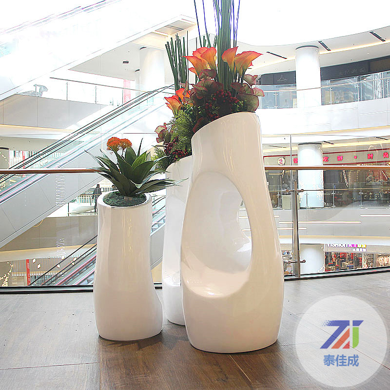 方圳玻璃鋼花盆商場酒店景觀美陳花器售樓中心創(chuàng)意組合式花缽定制